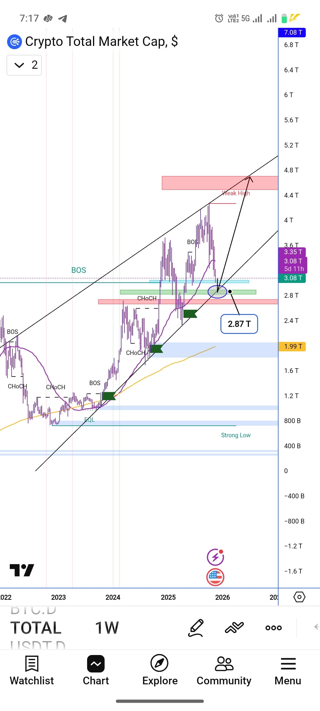 Trh pravděpodobně zasáhne tuto oblast po retestu 2.87T.
