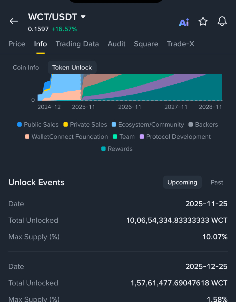 Hlavní odemčení 10.07% z celkové nabídky proběhne 25. listopadu. Toto je velké relativní odemčení a může představit: