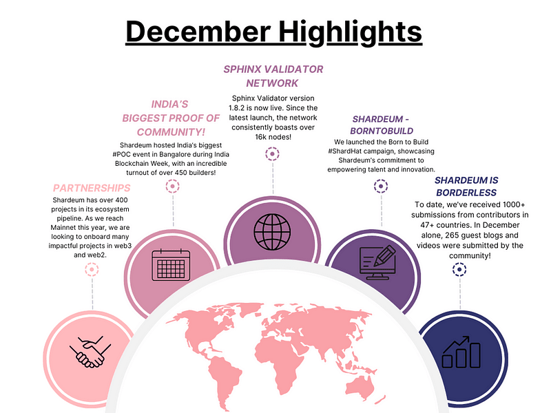 Tento rok byl ukončen spuštěním kampaně Born to Build #ShardHat, která ukazuje závazek Shardeum k posílení talentu a inovace. Více než 2000 #ShardHats bylo rozdáno nadšeným tvůrcům, kteří se zúčastnili hackathonu a navštívili naši akci Proof Of Community během indického blockchainového týdne.