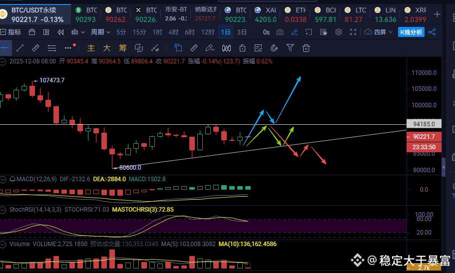 当前处于89500-91700美元强势震荡区间。