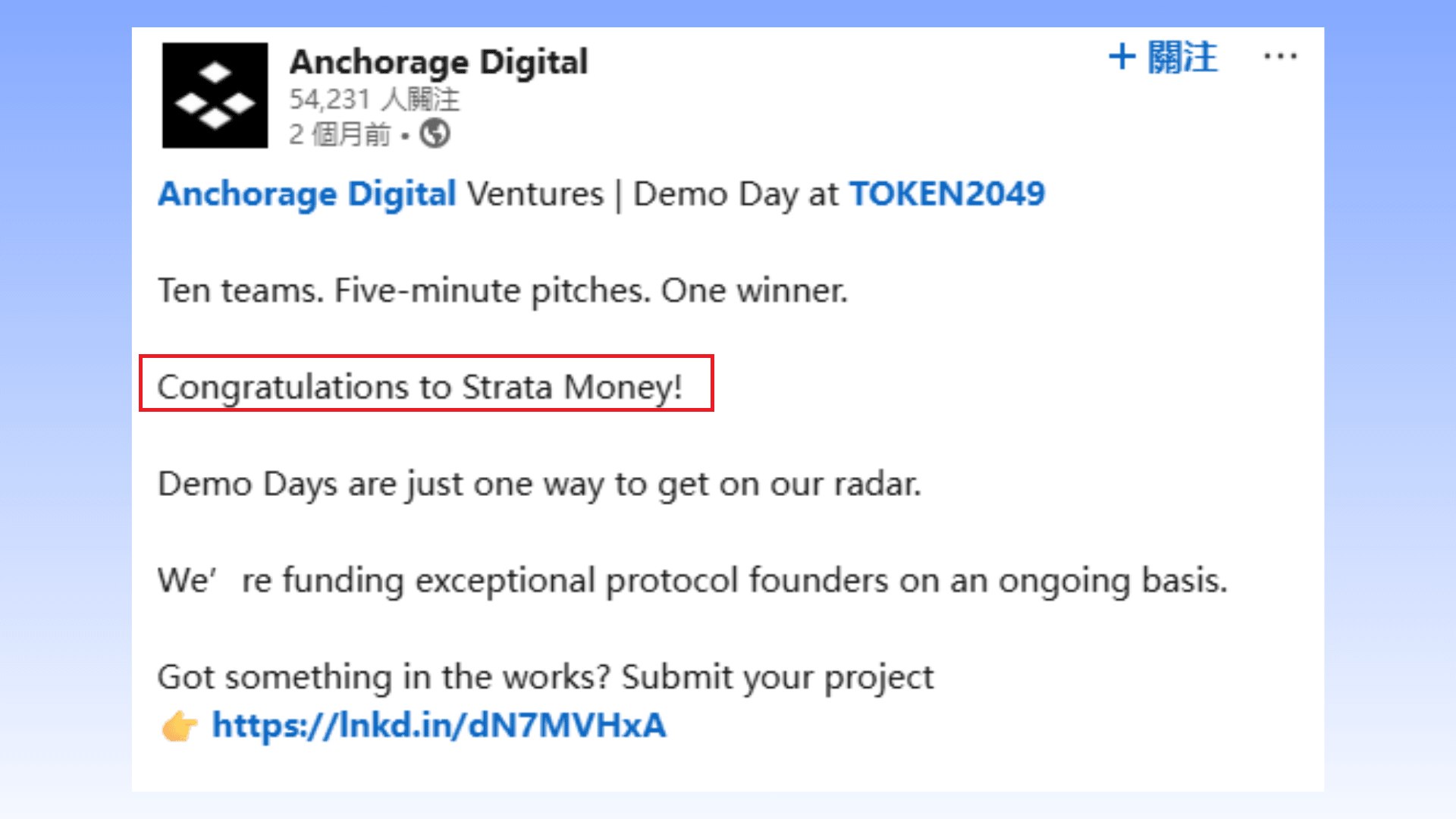 Ale myslím, že nejzajímavější je, že Strata na letošním demo dni Anchorage Ventures token2049 získala cenu za nejlepší pitch, není divu, že si toho všimli.