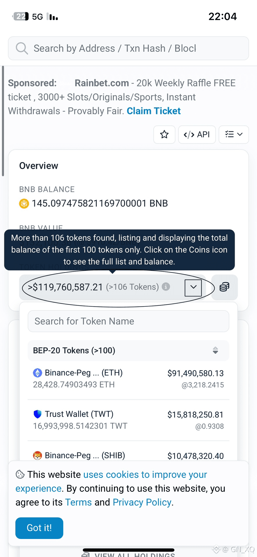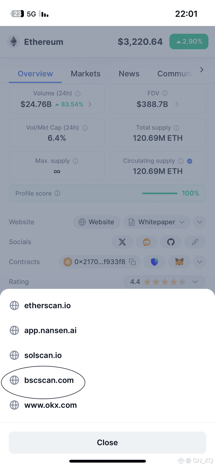 ستظهر لك عدة مواقع، اختر منها BscScan.