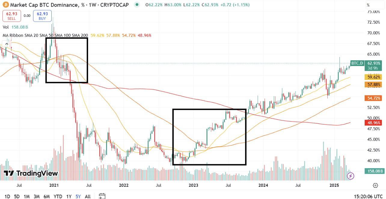 ⢠ETH, XRP, SOL mohou v obdobĂ bull marketu vĂ˝raznÄ pĹedstihovat (silnÄji rĹŻst).