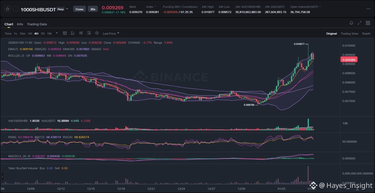 With no recent news items available in the digest, 1000SHIB's price action remains decoupled from fundamental catalysts, reflecting broader market sentiment driven by macroeconomic factors like Bitcoin dominance and overall altcoin rotation. In the absence of project-specific updates, partnerships, or regulatory headlines, the neutral news vacuum labels sentiment as mixed—neither providing bullish fuel for breakout nor bearish pressure for immediate capitulation. This lack of news aligns with the chart's range-bound consolidation, avoiding any sell-the-news events or hype-driven pumps that could distort technical structure. Historically, such quiet periods for SHIB derivatives like 1000SHIB often precede volatility expansion tied to meme coin cycles, but without fresh inputs, price remains at the mercy of technical levels and order flow.