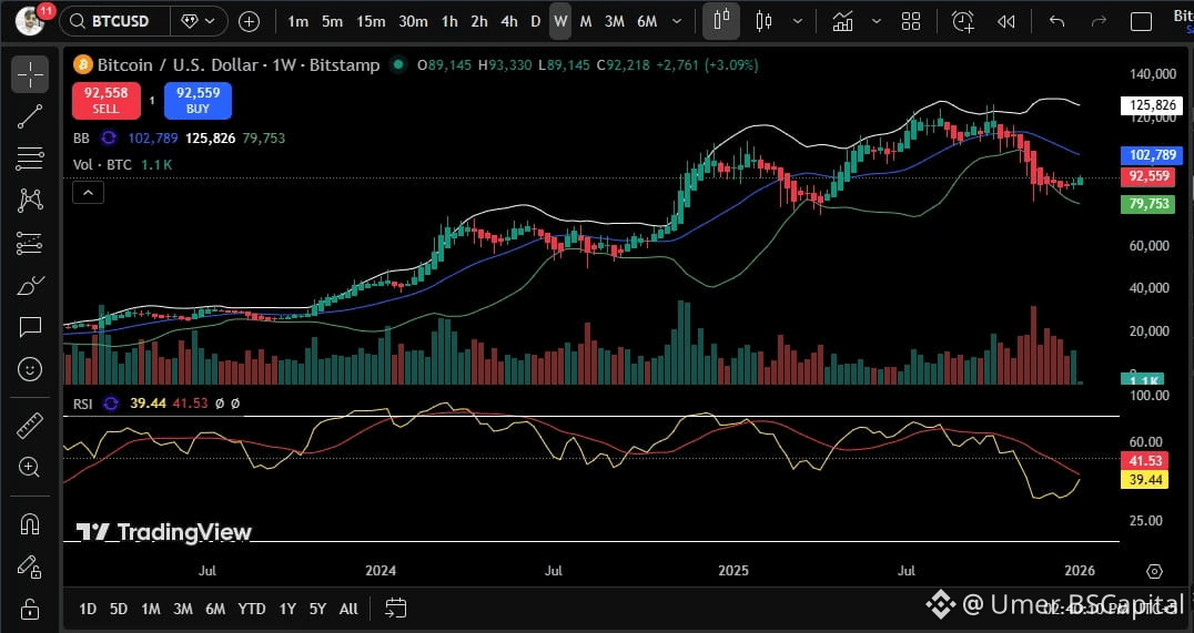 Bitcoin is currently testing a critical decision zone on the weekly timeframe.