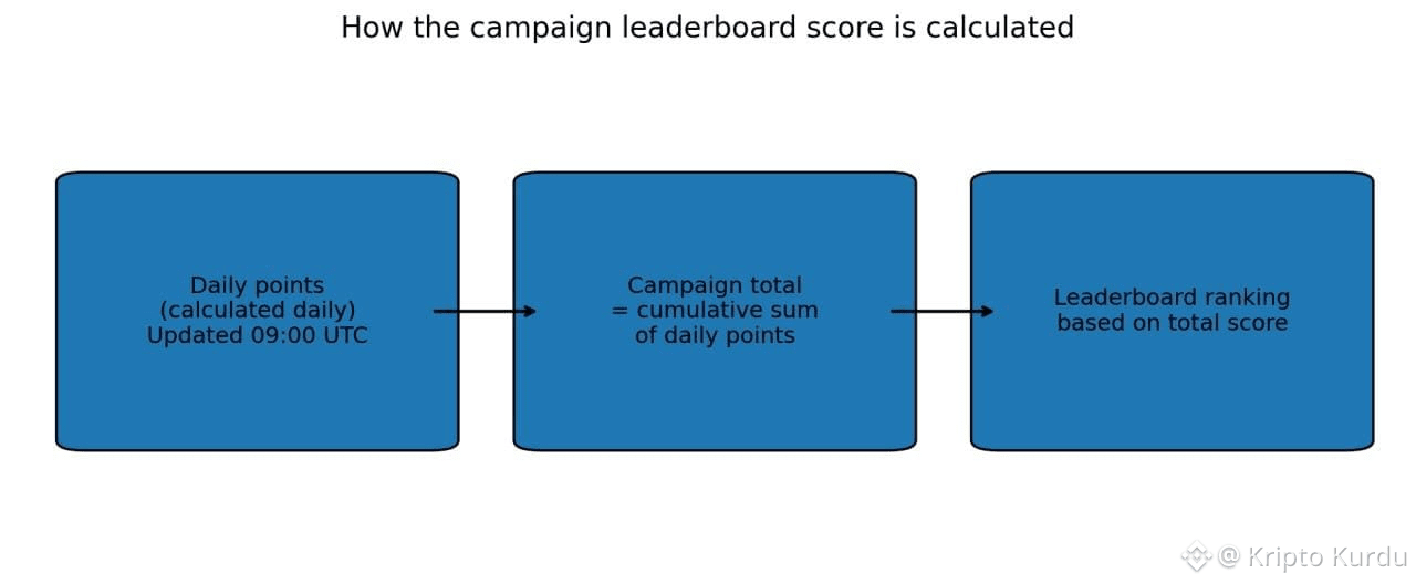 The total score you see on a campaign leaderboard equals the cumulative sum of the daily points earned throughout the campaign period.