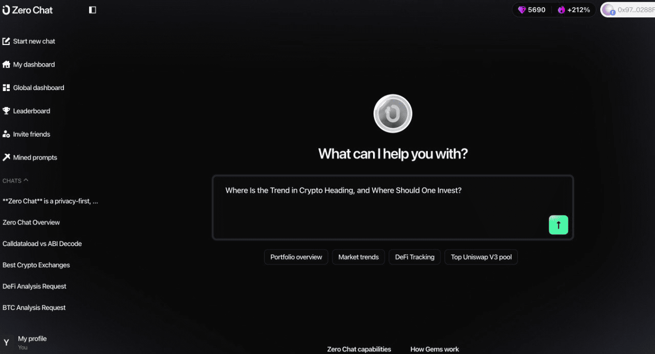 Mám svého asistenta. Dělá každou analýzu, která mi pomůže získat zisk v kryptoměně, vyhodnocuje moji peněženku, mluví o stavu bezpečnosti, říká mi trendy a přináší mi alfa projekty. To jsou jen některé jednoduché věci, které dělá Zero Chat.