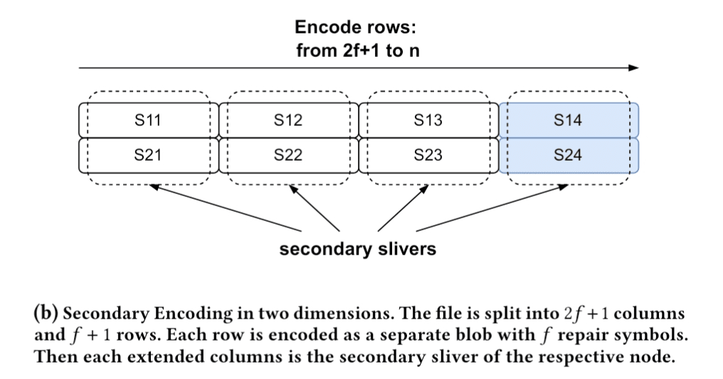 Red Stuff přináší něco, co vypadá jednoduše, až to uvidíš, ale je mohutné, až si to rozmyslíš: dvourozměrné kódování. Místo rozřezání blobu v jednom směru rozřezává Walrus v dvou směrech. Rád si to představuji jako poskytnutí dat šířky i výšky. Blob se rozdělí na primární kousky a sekundární kousky, vytvářející matici místo řádku. Dělá se to ne kvůli elegance, ale protože obnova ve dvou rozměrech je zásadně levnější a flexibilnější než v jednom.
