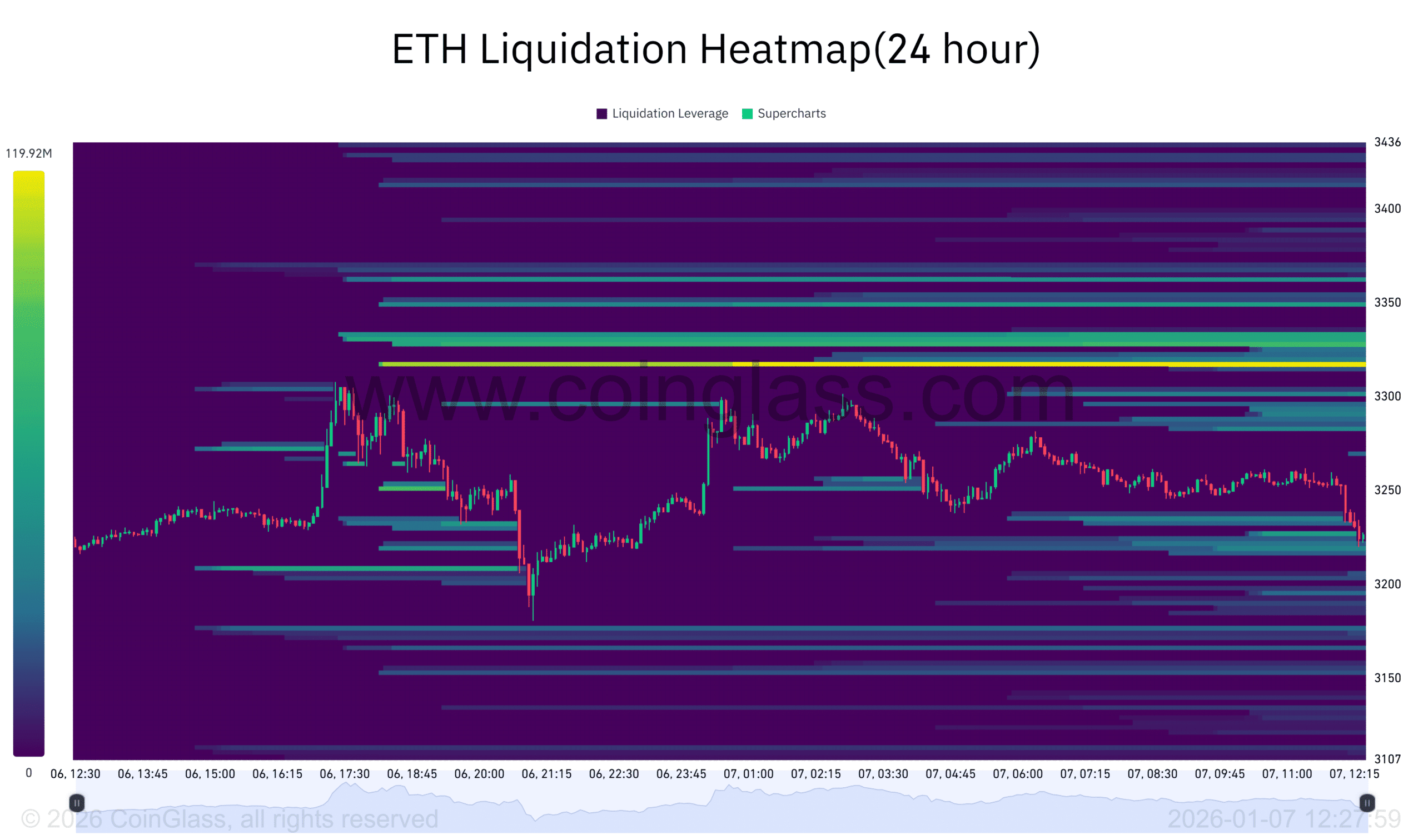 Zatím je likvidita Ethereum soustředěna kolem 3200–3400 USD; pokud se nepřekoná, není vyloučeno, že klesne zpět k 3000 USD.