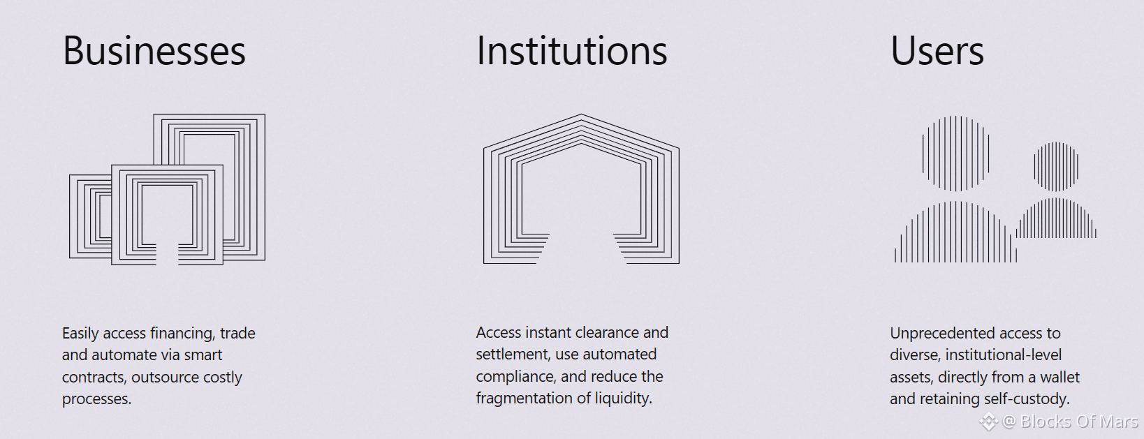 This kind of automation changes the game for regulated markets. Businesses get access to financing, trading, and managing tokenized assets—and a lot of the compliance heavy lifting happens right on the chain. Institutions see faster clearing and settlement, less fragmented liquidity, and more predictable regulatory outcomes, since every transaction already follows the rules in the protocol. And users? They can hold real assets in their wallets without trusting some middleman to stay compliant for them. It’s a new way forward for regulated finance, built for the world that’s coming.
