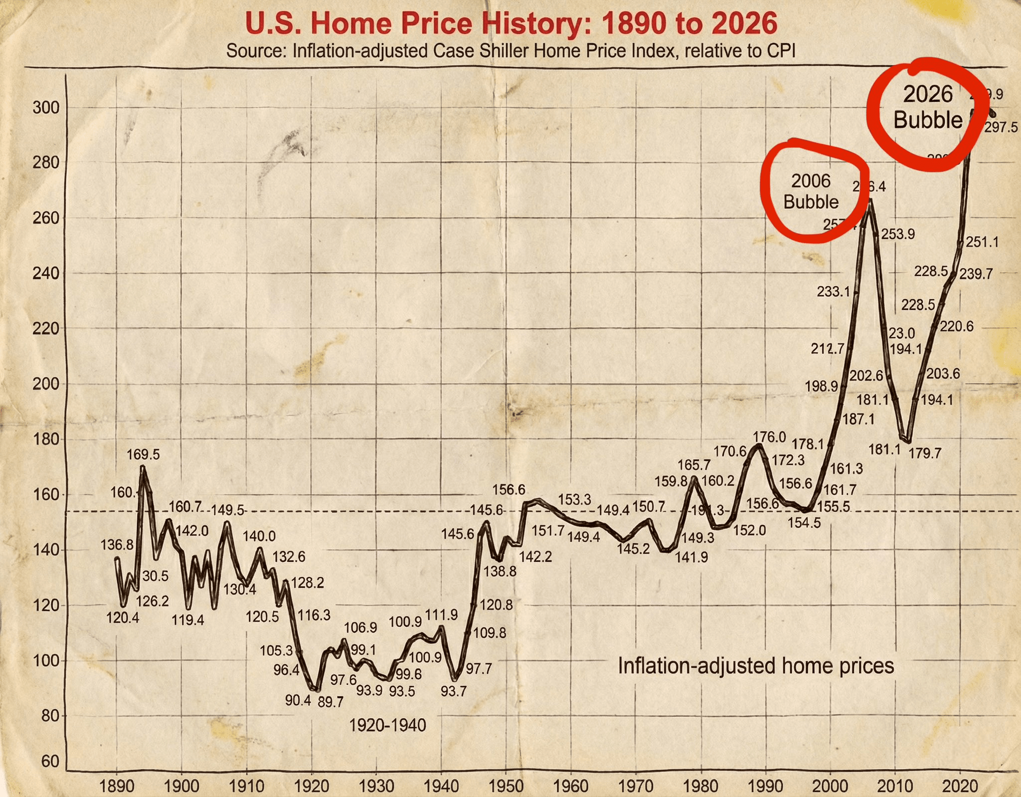 V roce 2006 dosáhl americký bytový index úrovně 266,4, což bylo úroveň, která zásadně odstoupila od historických hodnotových norm.