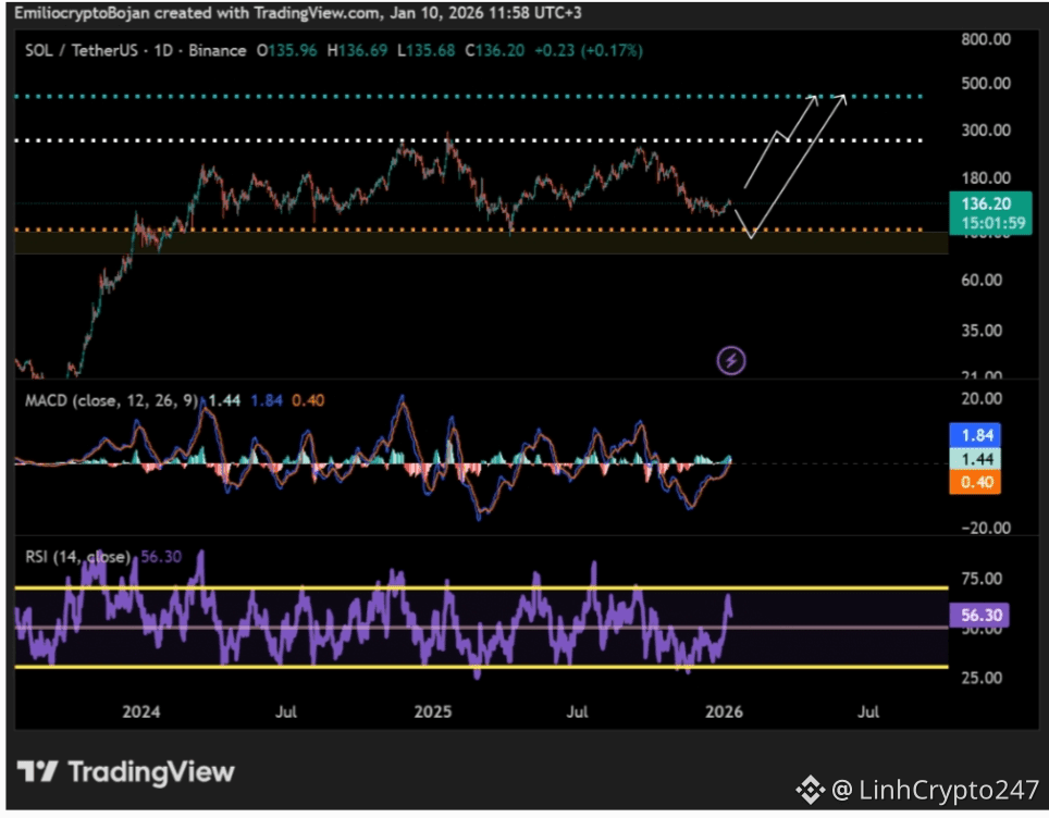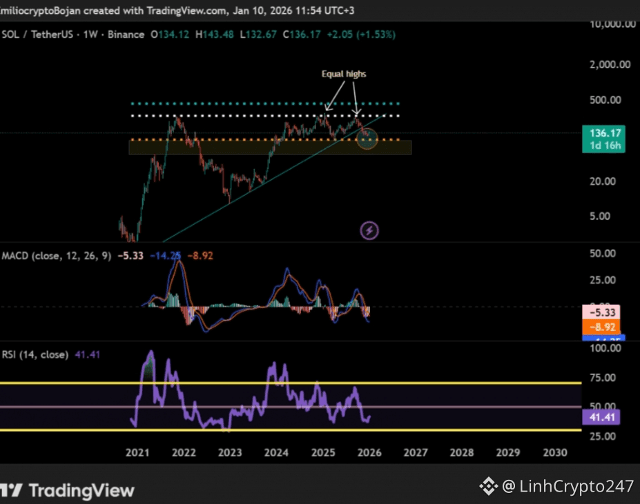 From a technical perspective, SOL was trading around $136 on January 10, but recent recovery attempts appear fragile amid a broader risk-off market environment.