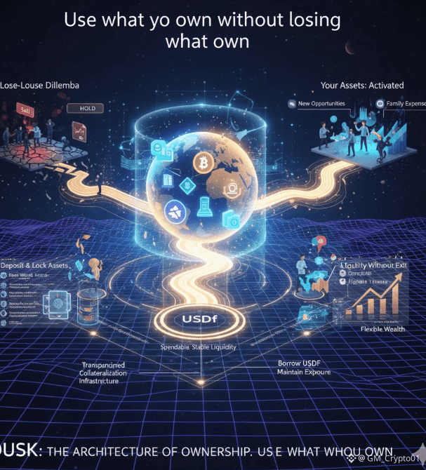 That constant tension is mentally exhausting. It feels like you are being punished for believing in the future of something. DUSK tackles this by letting you use your assets as collateral instead of as something that must be sold to become useful. You lock your tokens inside the protocol, you receive USDf, and your original holdings remain yours. They can rise, they can fall, and your exposure stays intact while your liquidity becomes real and usable.