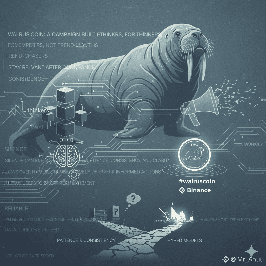This campaign is not designed to impress users in five seconds. It is designed to stay relevant after five months. In a market driven by emotional reactions, Walrus Coin introduces something rare: a calm, structured participation model that rewards patience, consistency, and clarity.