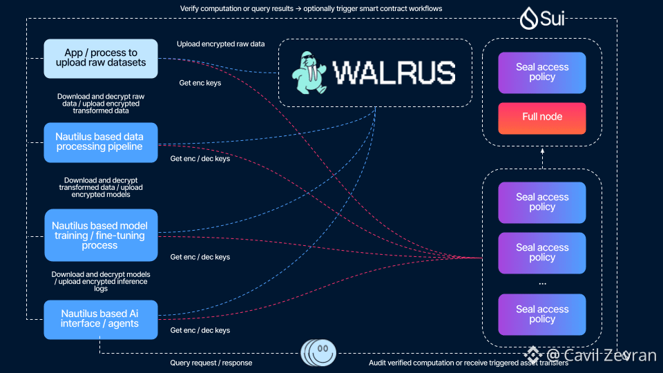 Through Move integration, Walrus blobs become objects with metadata. AI agents query these for fixed datasets, ensuring identical results. WAL facilitates access fees, distributed to stakers for network upkeep.