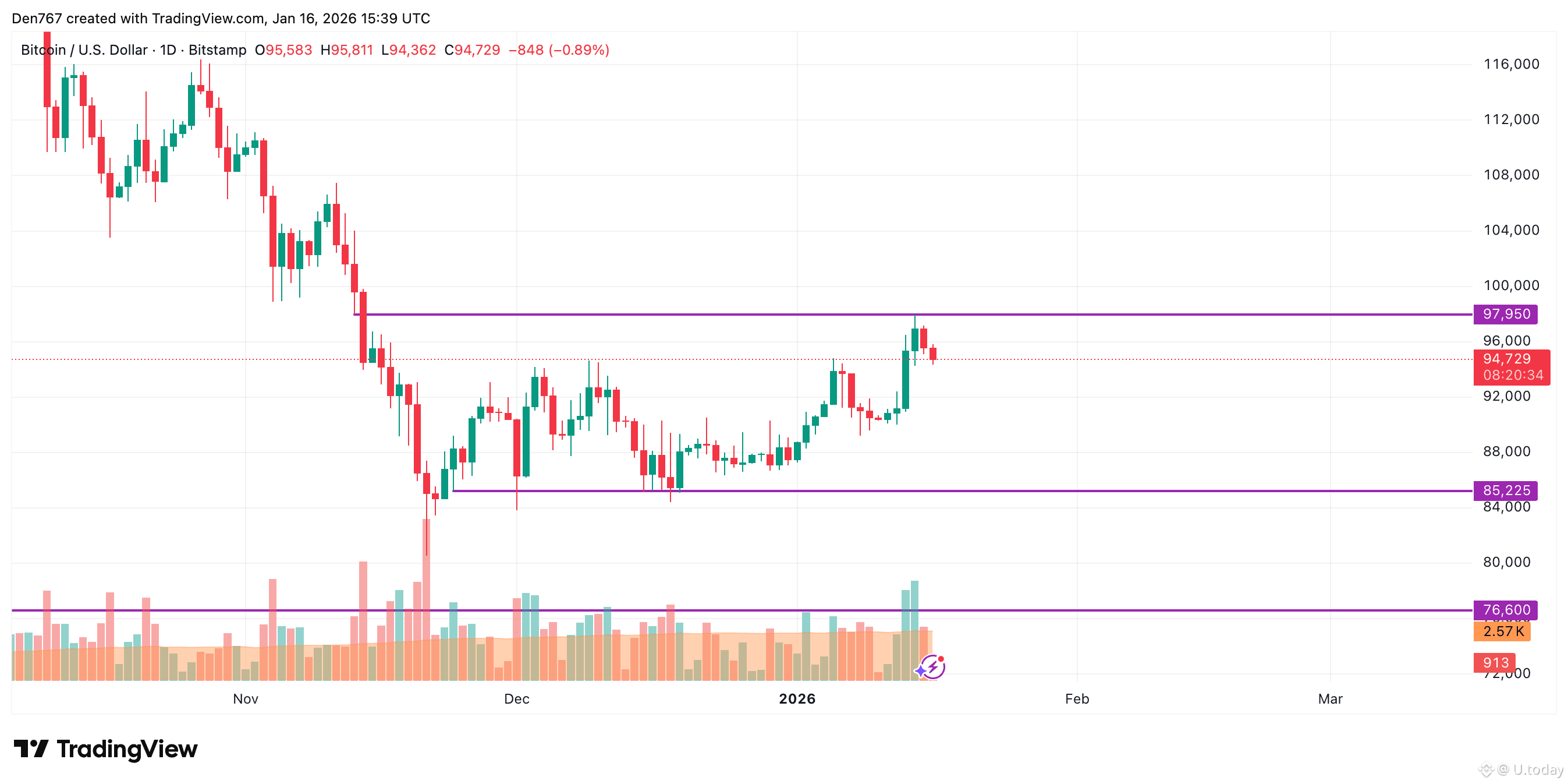 If the bar closes near its low, there is a high chance of seeing a test of the $93,000-$94,000 range by the end of the week.