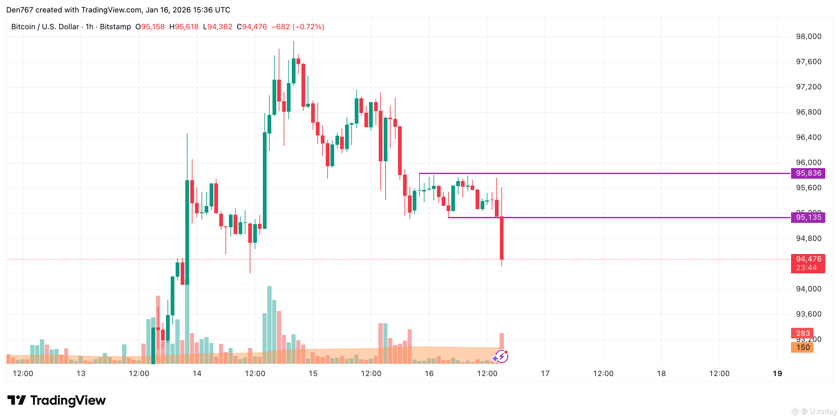 On the hourly chart, the price of BTC is going down after a breakout of the local support at $95,135. If the daily bar closes far from that mark, traders may witness a further drop to the $94,000 zone tomorrow.