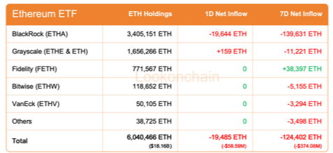 Během jednoho dne byl zaznamenán čistý odtok -19,485 ETH.