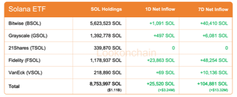 Během jednoho dne byl zaznamenán pozitivní tok kapitálu +25,520 SOL.