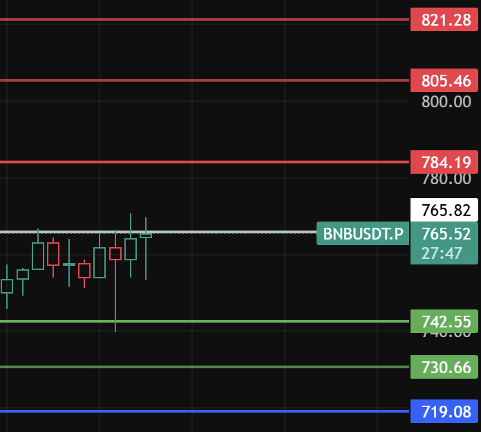 Pokud se dnes odraz neprojeví nad 765, znamená to, že menší odraz nemá sílu. Pokračujte dolů, věnujte pozornost podpěrným úrovním poblíž 742-730-720!#BNB走势