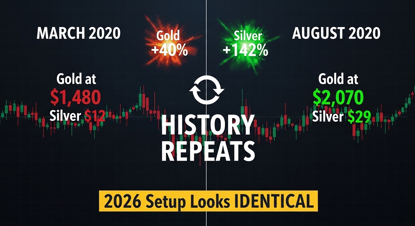 Kdy se naposledy stalo toto nastavení? 2020. Zlato vzrostlo o +40% za 5 měsíců. Stříbro? ŠÍLENÝCH +142%.