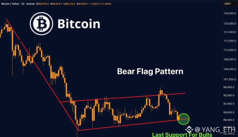 BITCOIN’S BEAR FLAG IS REACHING DECISION TIME.