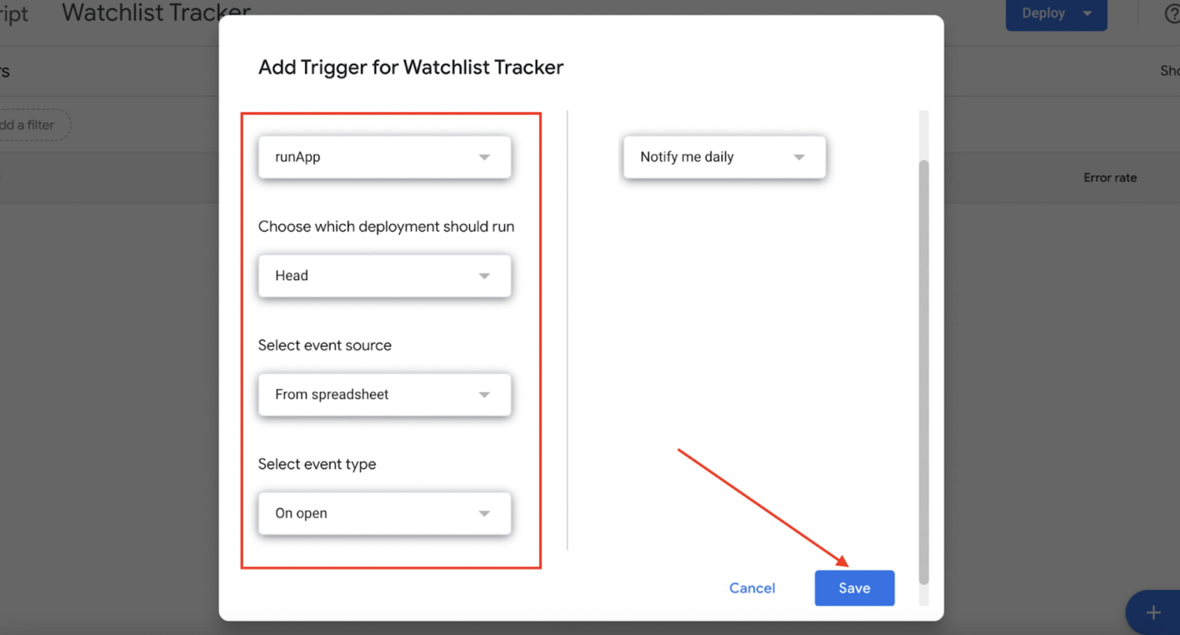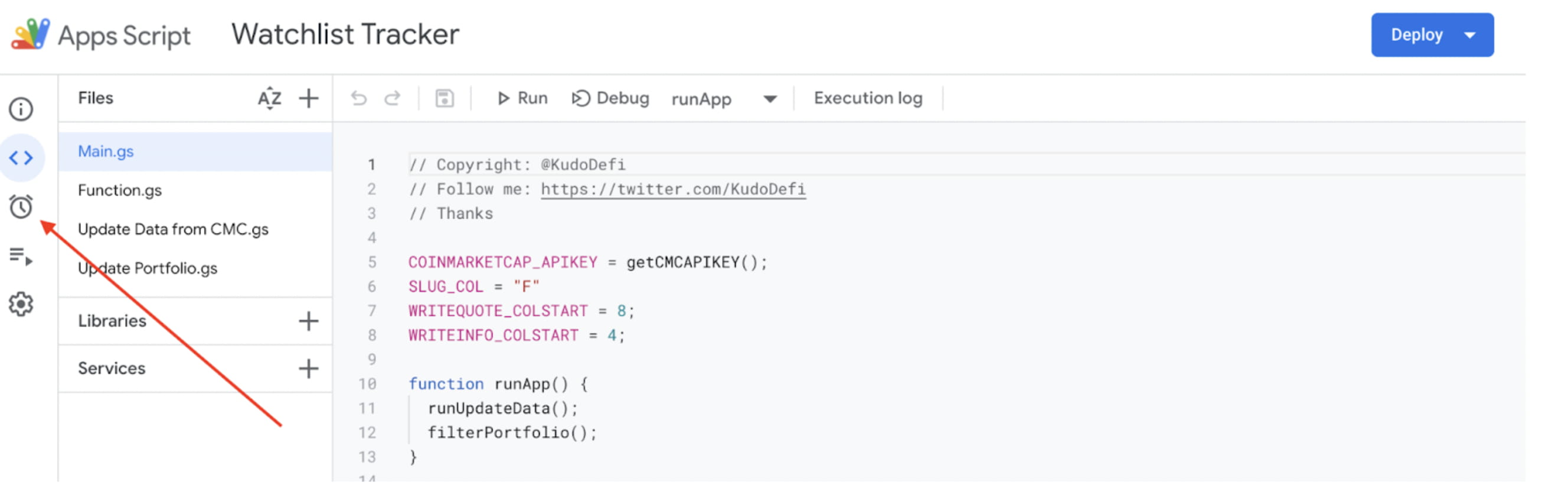 Skript, který aktualizuje data z Coinmarketcap a Defillama, se nespustí, dokud nestisknete tlačítko spustit v ovladači skriptu. Google má ale nástroj, který vám pomůže jej automaticky spustit pokaždé, když otevřete soubor nebo stisknete F5. To jsou spouštěče od samotného Googlu.