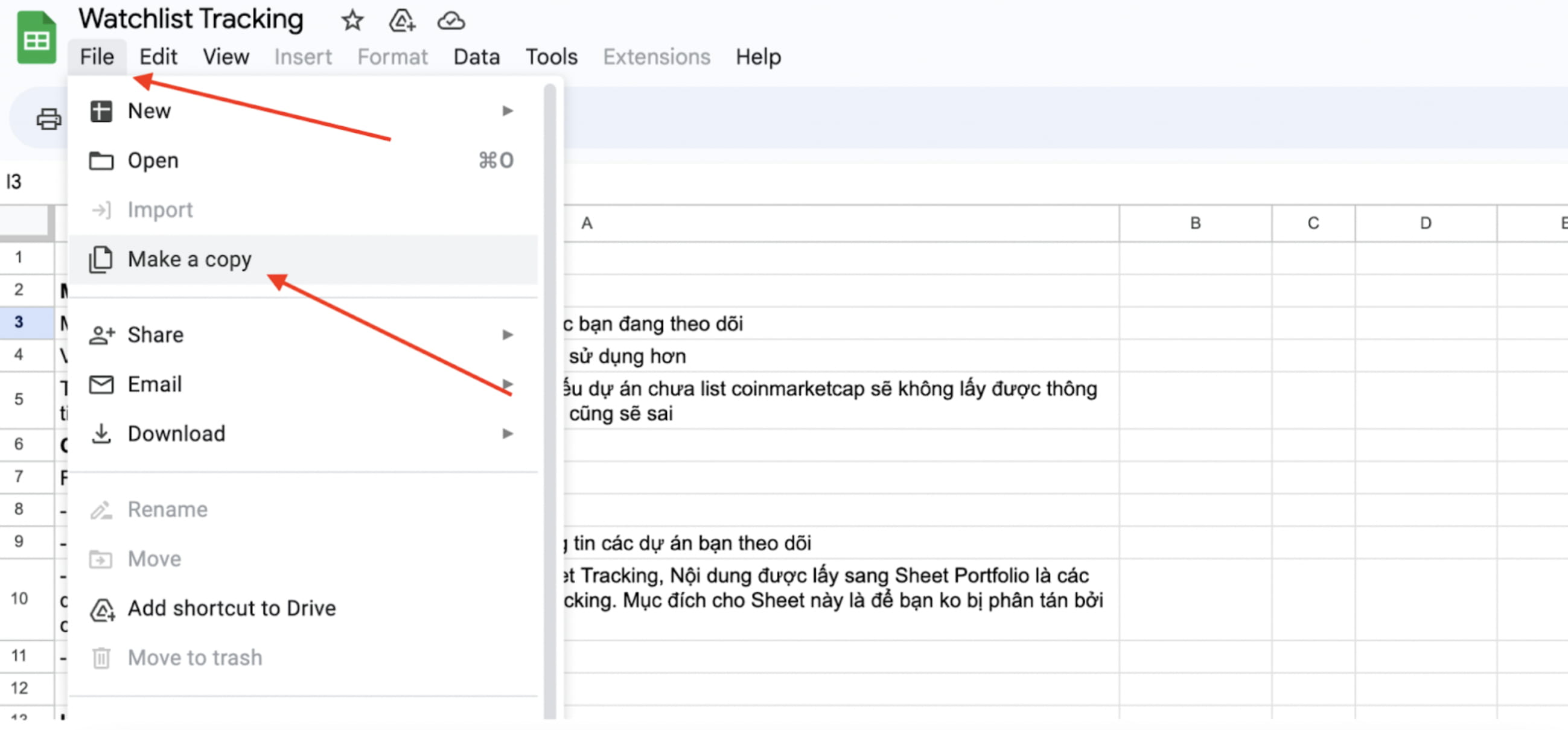 Vraťte se k souboru šablony Tabulky Google: Správce seznamu sledovaných položek, který jsem sdílel za účelem klonování souboru.