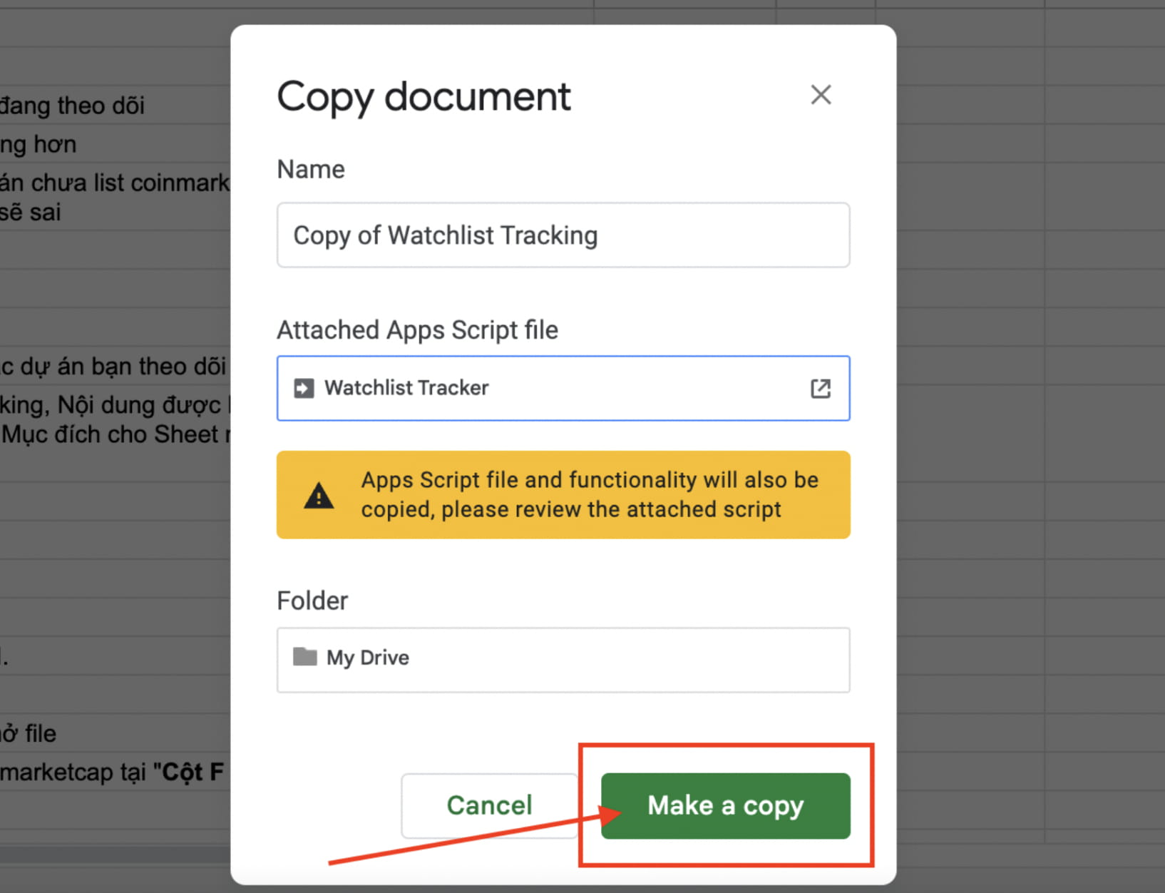Ve vyskakovacím okně se také objeví: Klonovat soubor bude také klonovat spustitelné skripty souboru, nemusíte se bát, protože veškerý zdrojový kód, který zapíšete, je OPEN SOURCE, kdokoli může vidět a vědět, jaké operace soubor provádí. neexistuje shromažďování žádných informací. Zdrojový kód skriptu můžete zkontrolovat výběrem položky Rozšíření > Skript po klonování souboru.