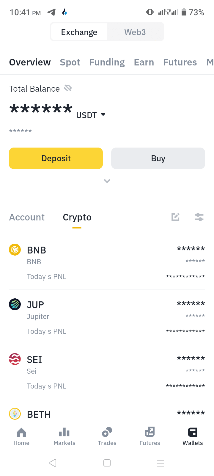 - Přihlaste se do aplikace Binance a klepněte na kartu "Peněženky".