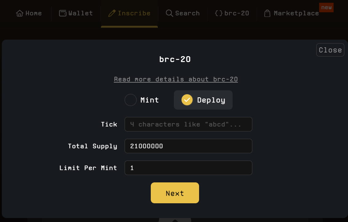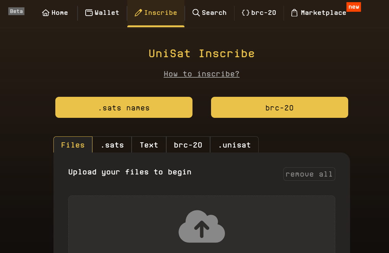 Kliknutím na Iinscribe na unisat zahájíte ražbu. Můžete razit text, názvy domén, obrázky atd. a také můžete razit tokeny brc-20.