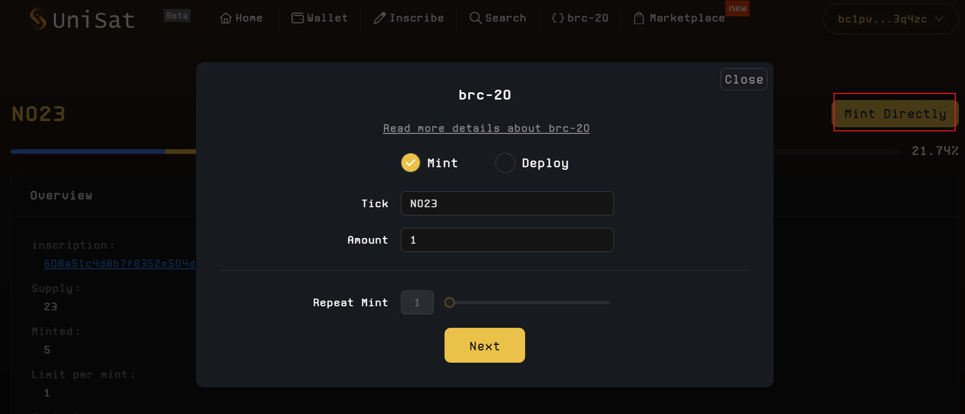Ražba byla nasazena v brc20 blockchainu Vyberte ty, které nejsou 100% vyraženy, nastavte množství při ražbě a zaplaťte plyn k ražbě.