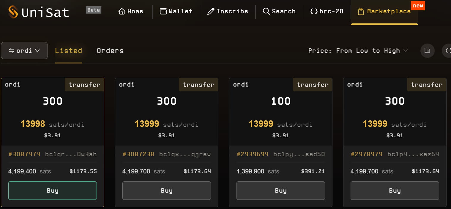 Některé populární BRC20 byly raženy a lze je zakoupit pouze na trhu.