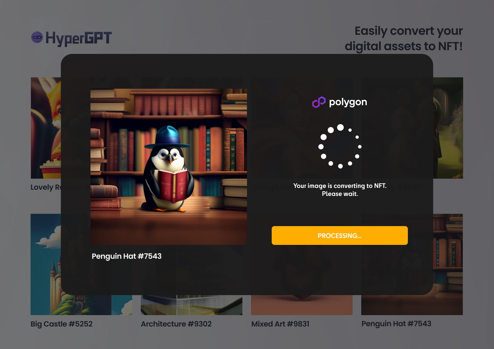 HyperNFT: Platforma HyperGPT zefektivňuje proces automatizací převodu vašeho obsahu na NFT, což usnadňuje monetizaci a distribuci vašich výtvorů.
