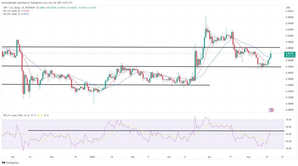Pokud by býci posunuli RSI na tuto úroveň, je dobrá šance, že XRP by mohl znovu dosáhnout úrovně $0.4800.