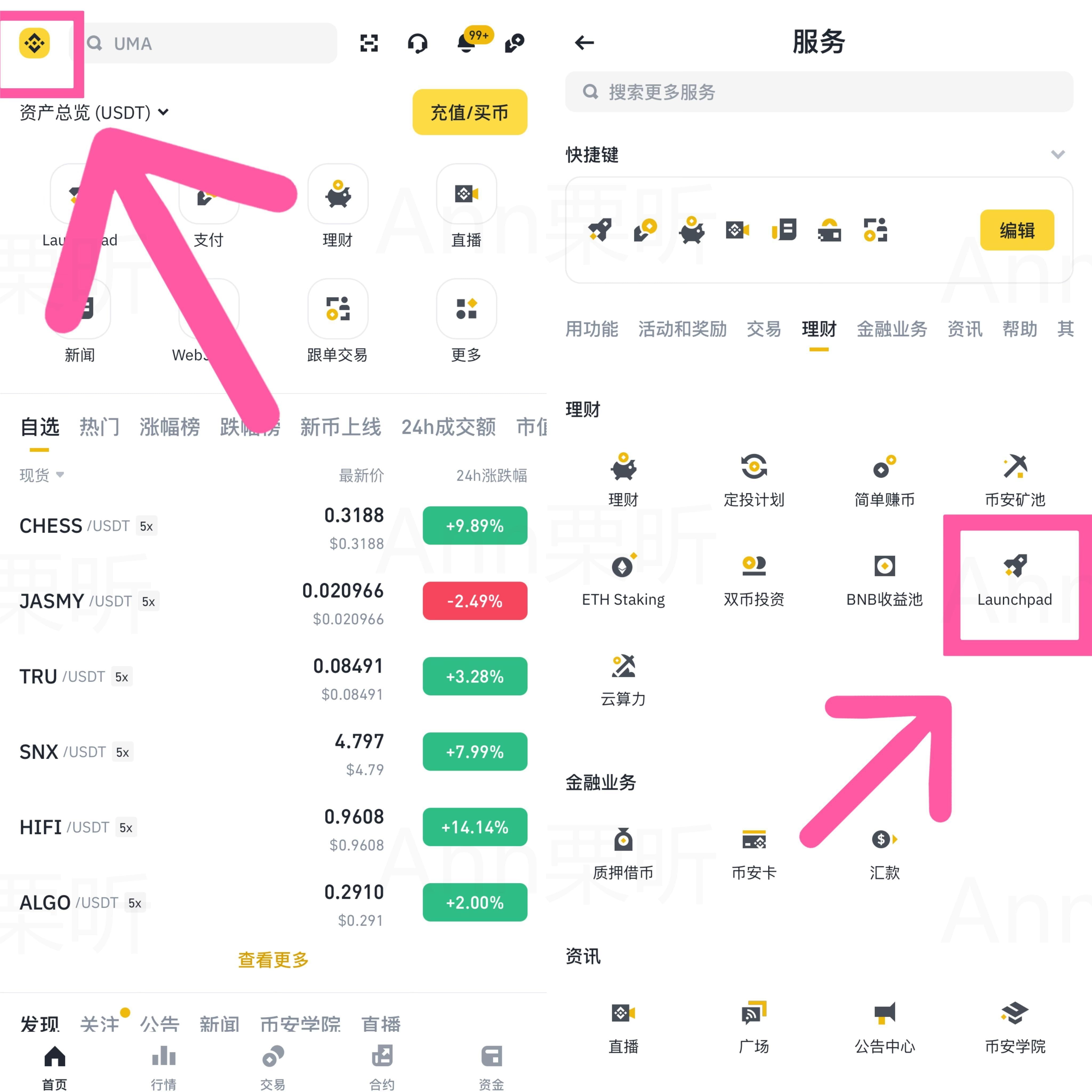 1. ZadejteOficiální stránky Binance Launchpad (verze pro PC)