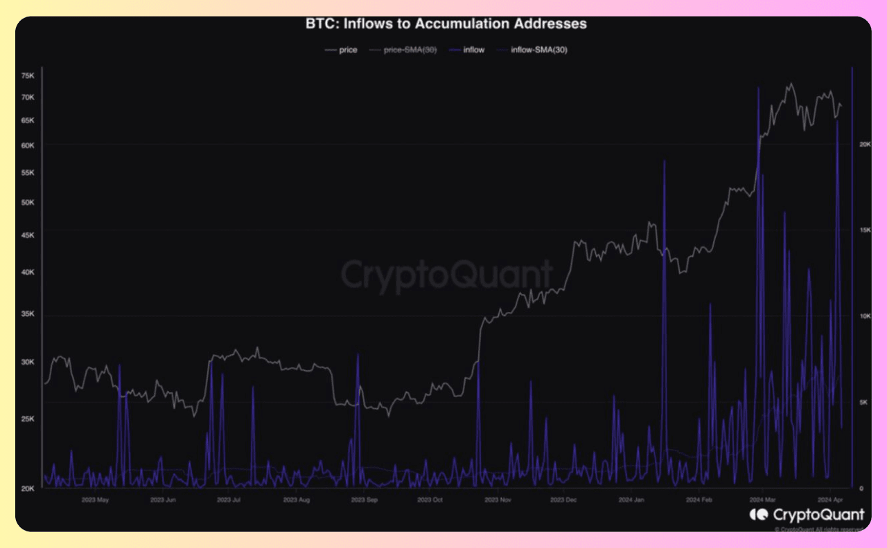 4. Navíc můžeme vidět obrovské přílivy BTC na akumulační adresy a jejich rezervy dosáhly historického maxima.