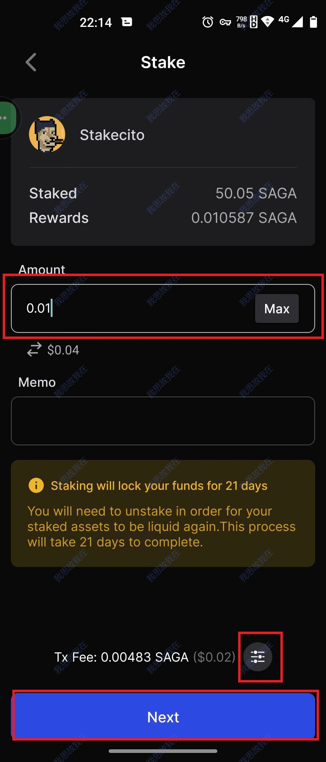 Zadejte částku zástavy a nezapomeňte prosím nechat plyn alespoň 3krát, například 0,1 tokenu, jinak budete nadále dostávat odměny a další operace bez plynu. K dispozici je také režim pro nastavení plynu. Pokud operace zástavy není naléhavá, můžete ušetřit peníze, pokud nejsou transakce v řetězci zaneprázdněné. Nakonec klikněte na „Další“ a dokončete závazek. Poznámka: Pokud zaškrtnete volbu Zapamatovat, tato rychlost bude v budoucnu vždy zvolena. Pokud budete chtít přepnout, nezapomeňte ji změnit.