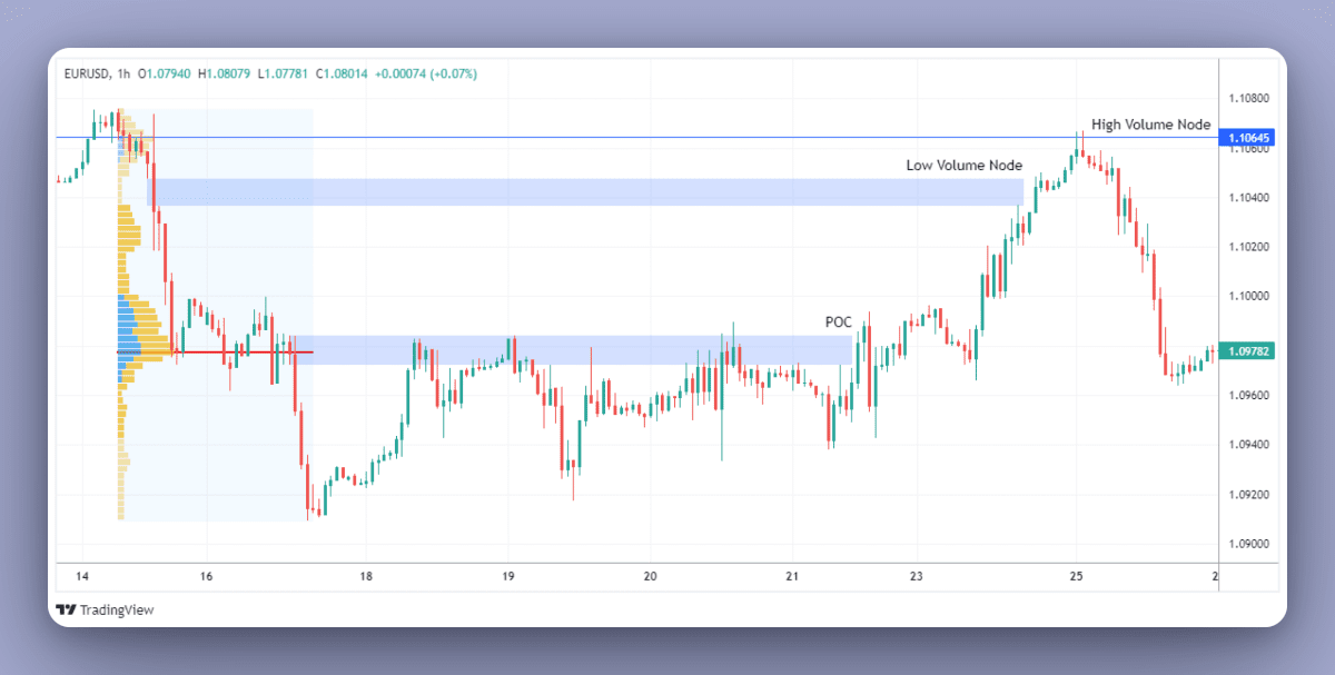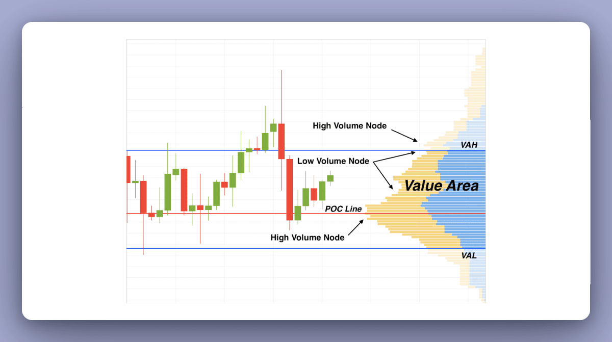 Jednoduše řečeno, ukazatel Volume Profile (VP) je nástroj používaný v technické analýze, který ukazuje, jak je objem obchodů distribuován mezi různé cenové úrovně během určitého období.