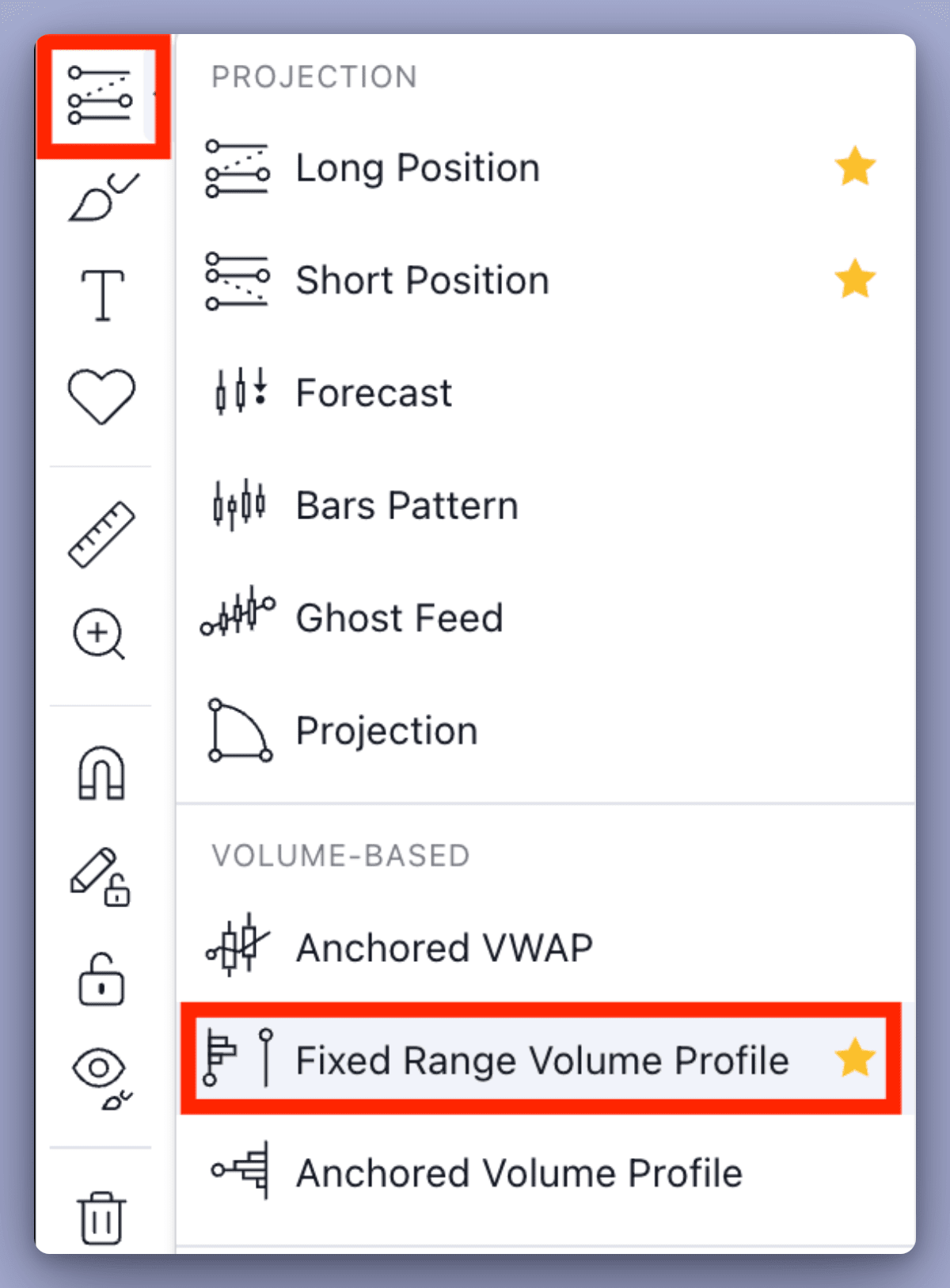 Nástroj FRVP najdete v části „Nástroje predikce a měření“ na levé straně grafu na platformě @TradingView.