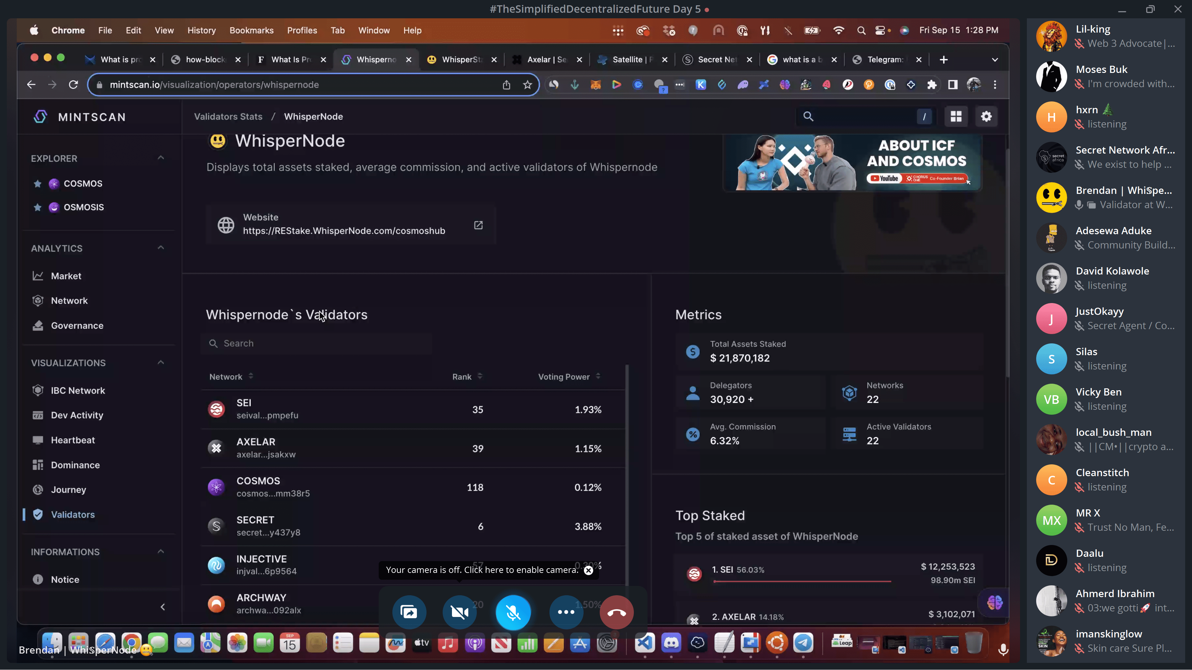 Am 5. Tag des virtuellen Events „Simplified Decentralized Future“ stand WhisperNode im Mittelpunkt und führte die Teilnehmer auf eine Reise durch die komplexe Welt der Kryptowährungen. WhisperNode betreibt robuste Validierer im gesamten Cosmos-Ökosystem und teilte sein Fachwissen in den Bereichen Krypto und Blockchain. Hier ist ein kurzer Einblick in das, was der Tag mit sich brachte: