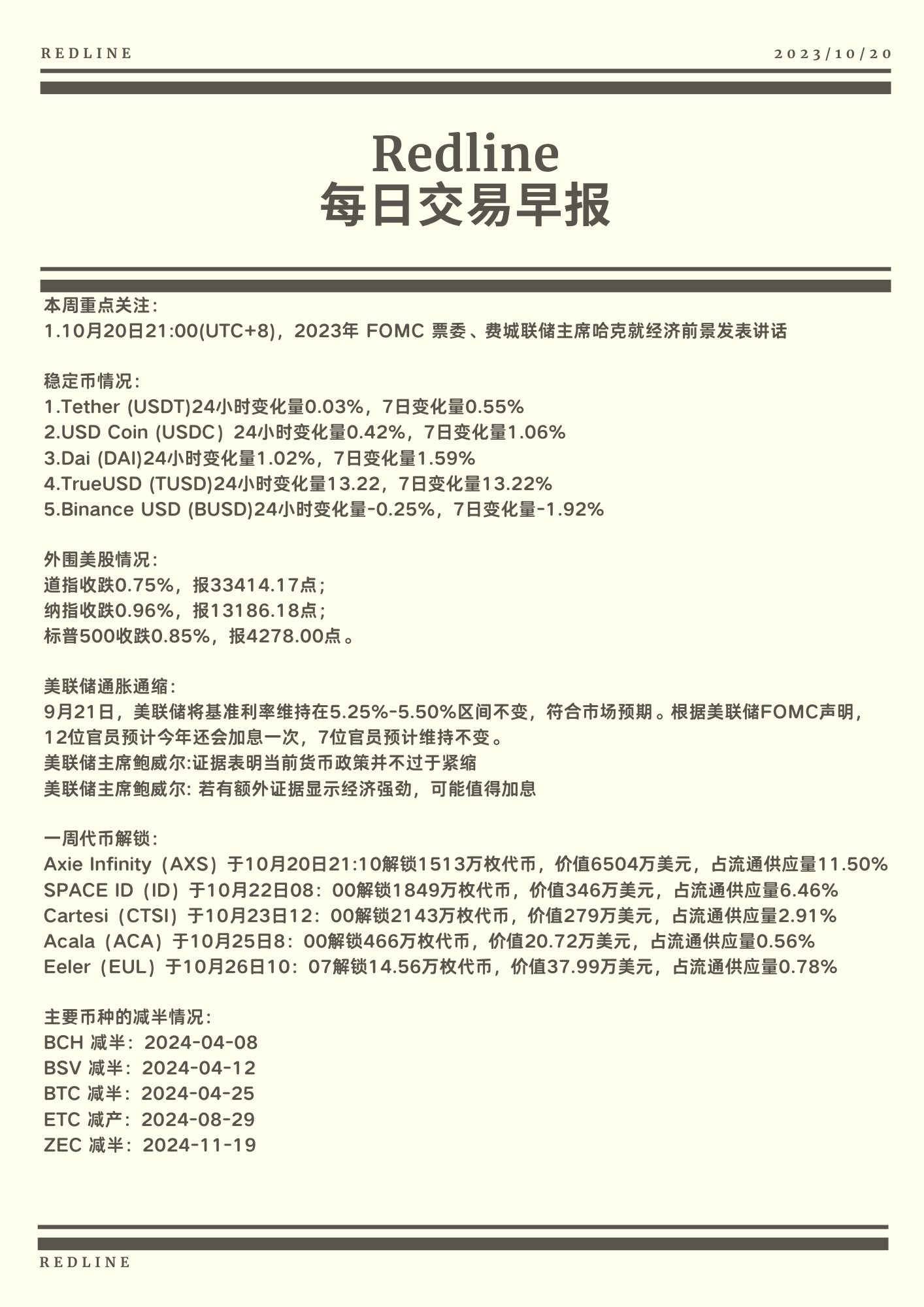 1. Am 20. Oktober um 21:00 Uhr (UTC+8) hielt Harker, Mitglied des FOMC-Abstimmungsausschusses 2023 und Präsident der Federal Reserve Bank of Philadelphia, eine Rede über die wirtschaftlichen Aussichten.