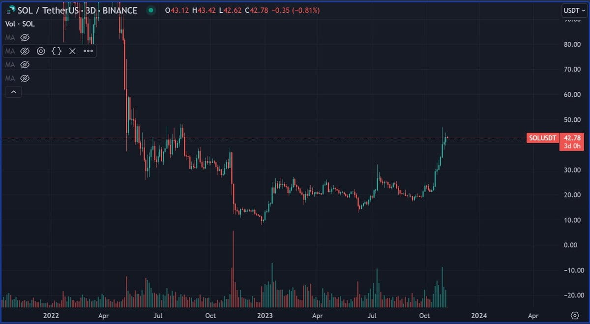 Der Händler äußert sich auch zu Solana (SOL) und sagt, dass SOL wahrscheinlich weiter steigen wird, nachdem das insolvente Unternehmen FTX den Verkauf seiner Solana-Bestände abgeschlossen hat.