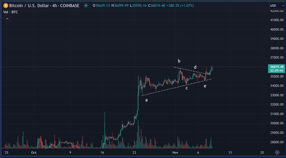 Zum Zeitpunkt des Schreibens wird Bitcoin für 36.576 $ gehandelt, ein Anstieg von 2,3 % in den letzten 24 Stunden.
