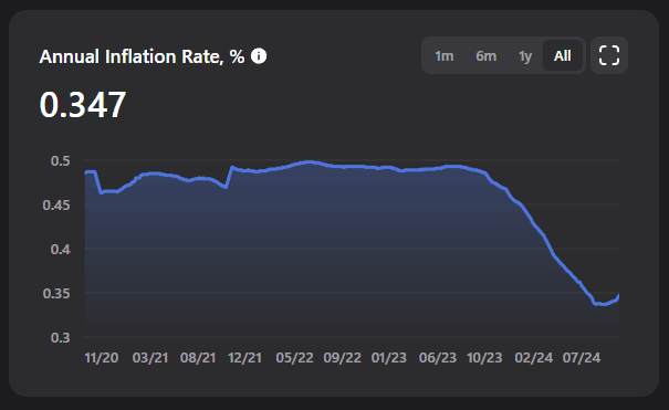 Obwohl Tonstat eine jährliche Inflationsrate von 0,6% angibt, zeigen aktuelle Daten niedrigere Raten für ein Jahr. Allerdings sehe ich Inkonsistenzen zwischen den MC-, Angebots- und Preiswerten auf CMC und ähnlichen Plattformen.