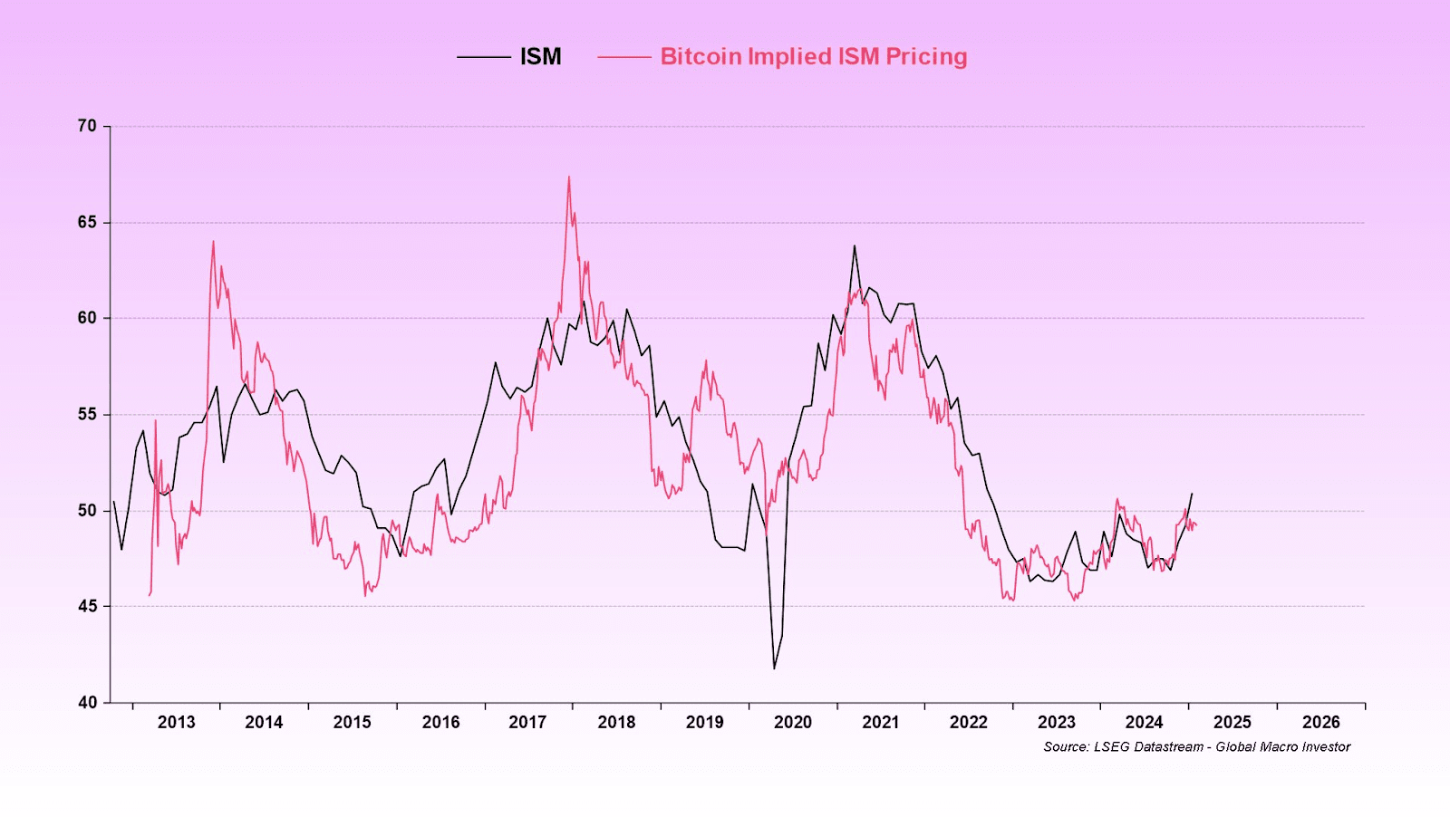 Einer der wichtigsten Faktoren ist die Korrelation zwischen Bitcoin und dem ISM (Institute for Supply Management), einem wichtigen Maß für die Gesundheit der US-Wirtschaft. Historische Daten zeigen, dass Bitcoin dazu neigt, stark zu wachsen, wenn der ISM die 50-Marke überschreitet. Derzeit erholt sich der ISM, was ein günstiges makroökonomisches Umfeld für den Kryptomarkt schaffen könnte.