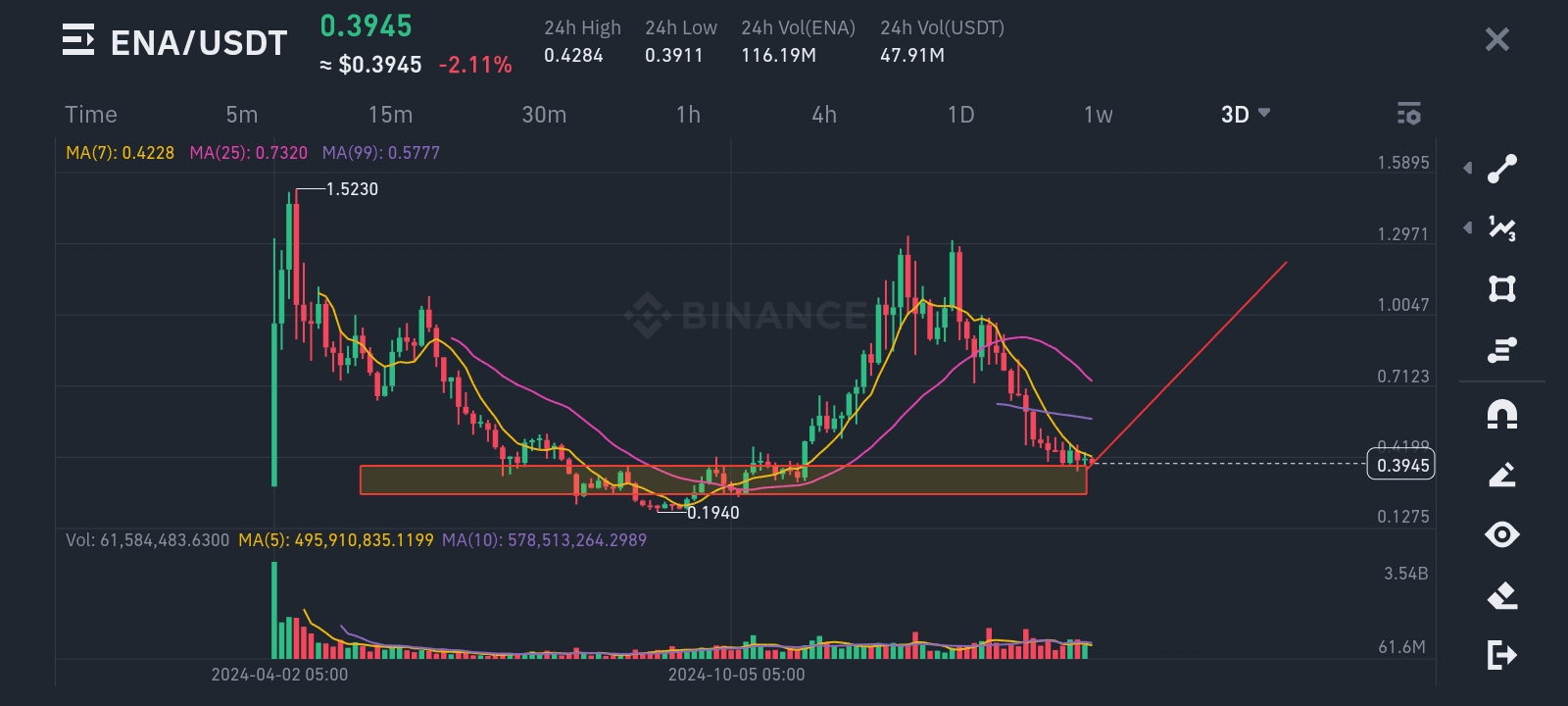 1. Technische Analyse und Preiskurse: Analysten haben bullische Muster in den Preisbewegungen von ENA beobachtet. Beispielsweise könnte ein Ausbruch über 0,9880 $ die bullische Dynamik bestätigen und den Preis potenziell in Richtung 1,0200 $ treiben. Umgekehrt, wenn der Preis unter 0,9850 $ fällt, könnte eine Korrektur in Richtung 0,9600 $ erfolgen, bevor eine mögliche Erholung eintritt.