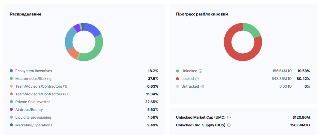 Wert der Münze im Projekt: Token $IO: wird zur Bezahlung von Dienstleistungen, Staking und Governance im Ökosystem verwendet.