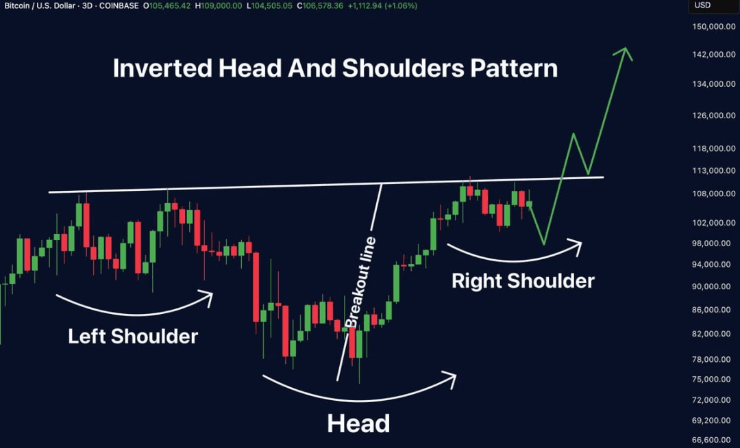 $BTC zeichnet ein klassisches bullishes Setup — das umgekehrte Kopf-und-Schultern-Muster.