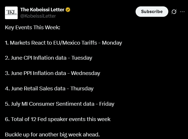 Wenn der VPI hoch ausfällt, prognostizieren der Kobeissi Letter und andere Experten hohe Verkaufswahrscheinlichkeiten, insbesondere da Trumps Zoll bereits eine Bedrohung darstellt.